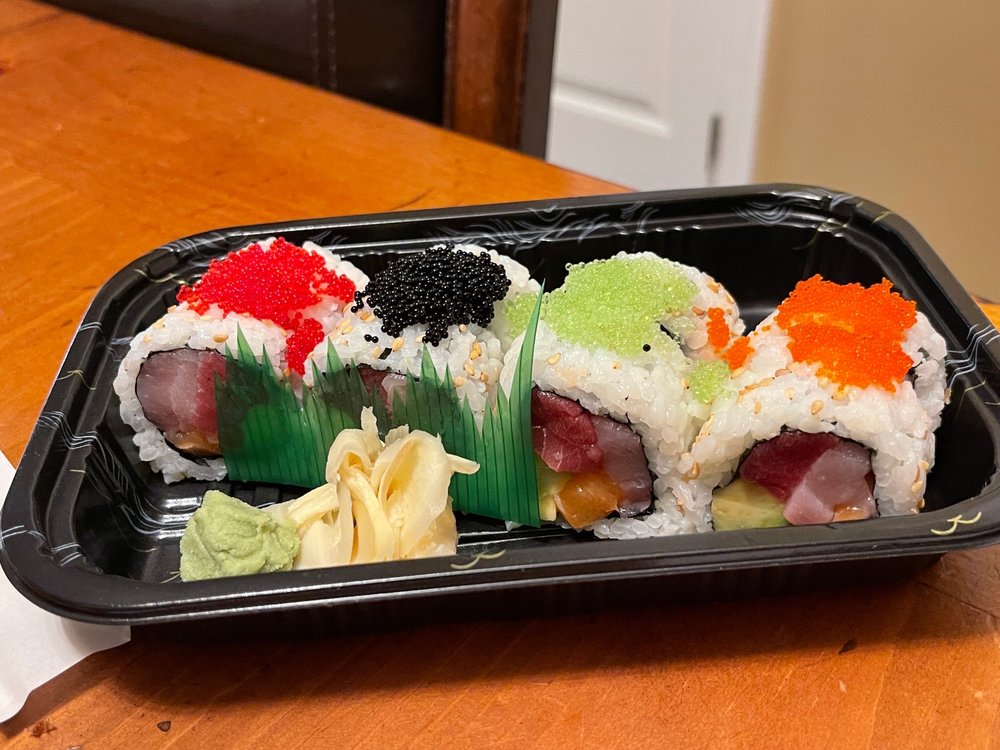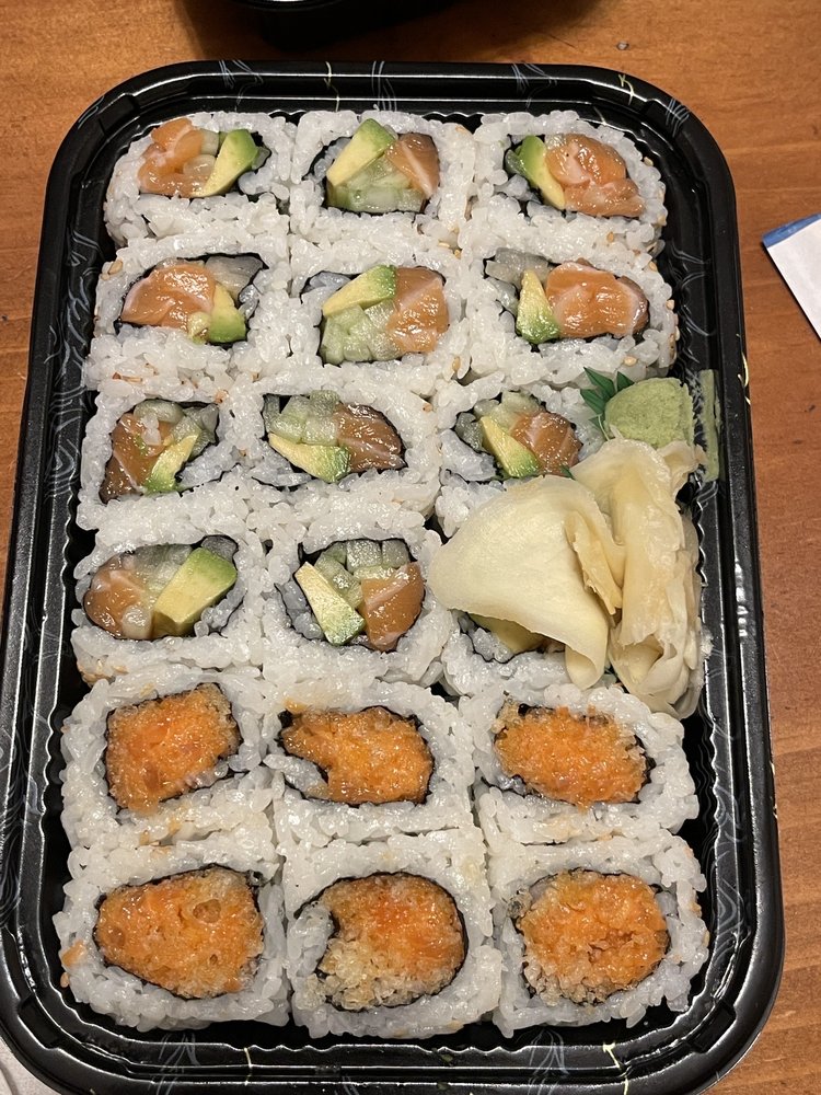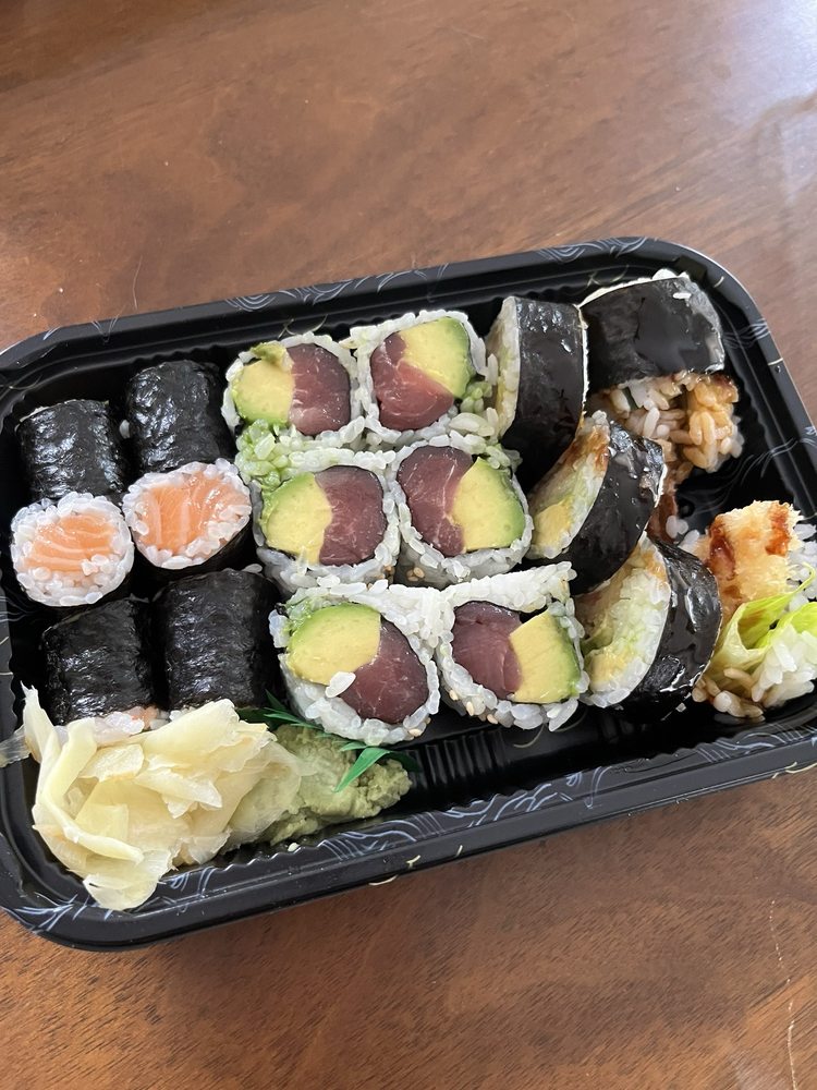 Pcs tuna,pcs salmon,pcs yellowtail sushi & California roll