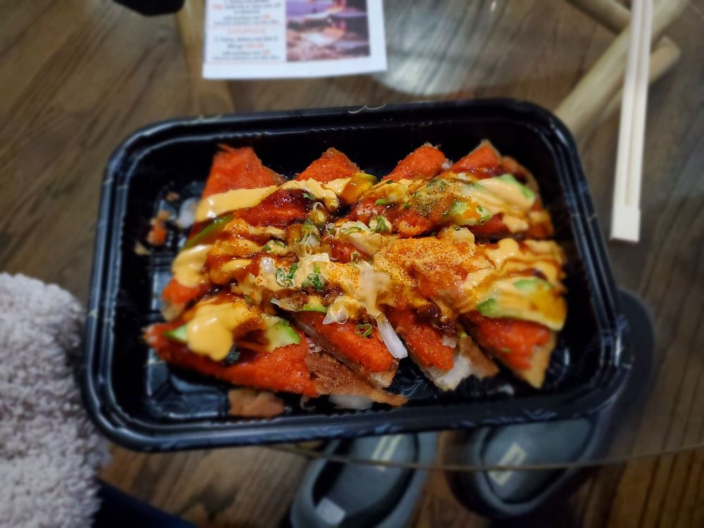 (Deep fried jalapeno with spicy assortment of fish inside.Topped with spicy mayo and eel sauce)